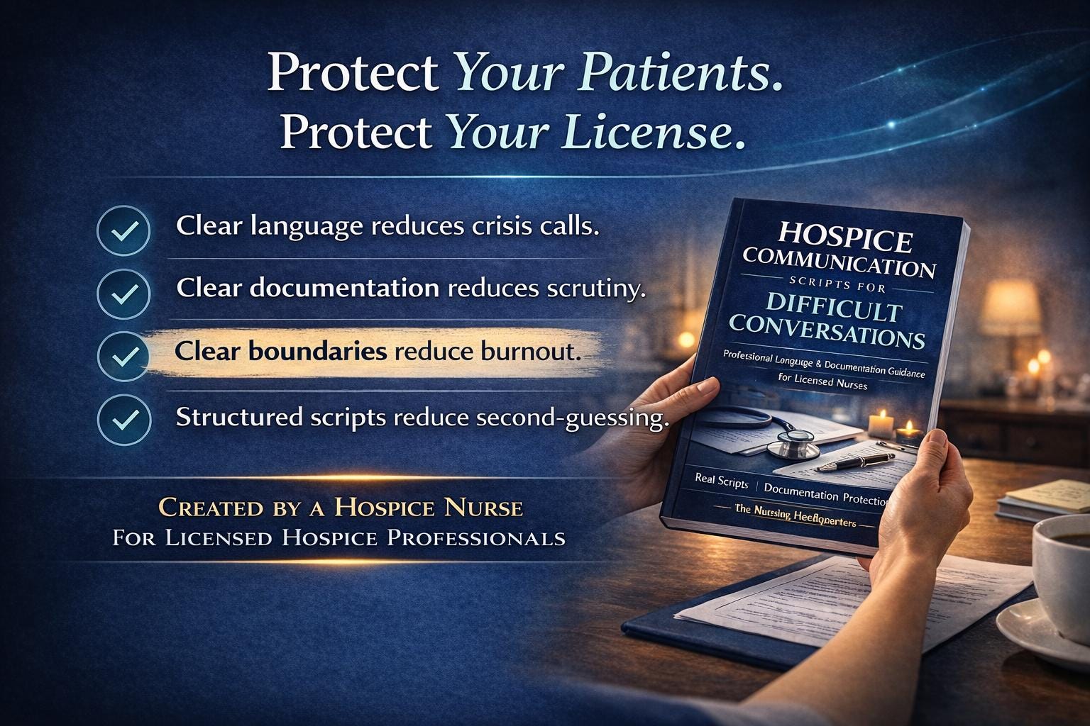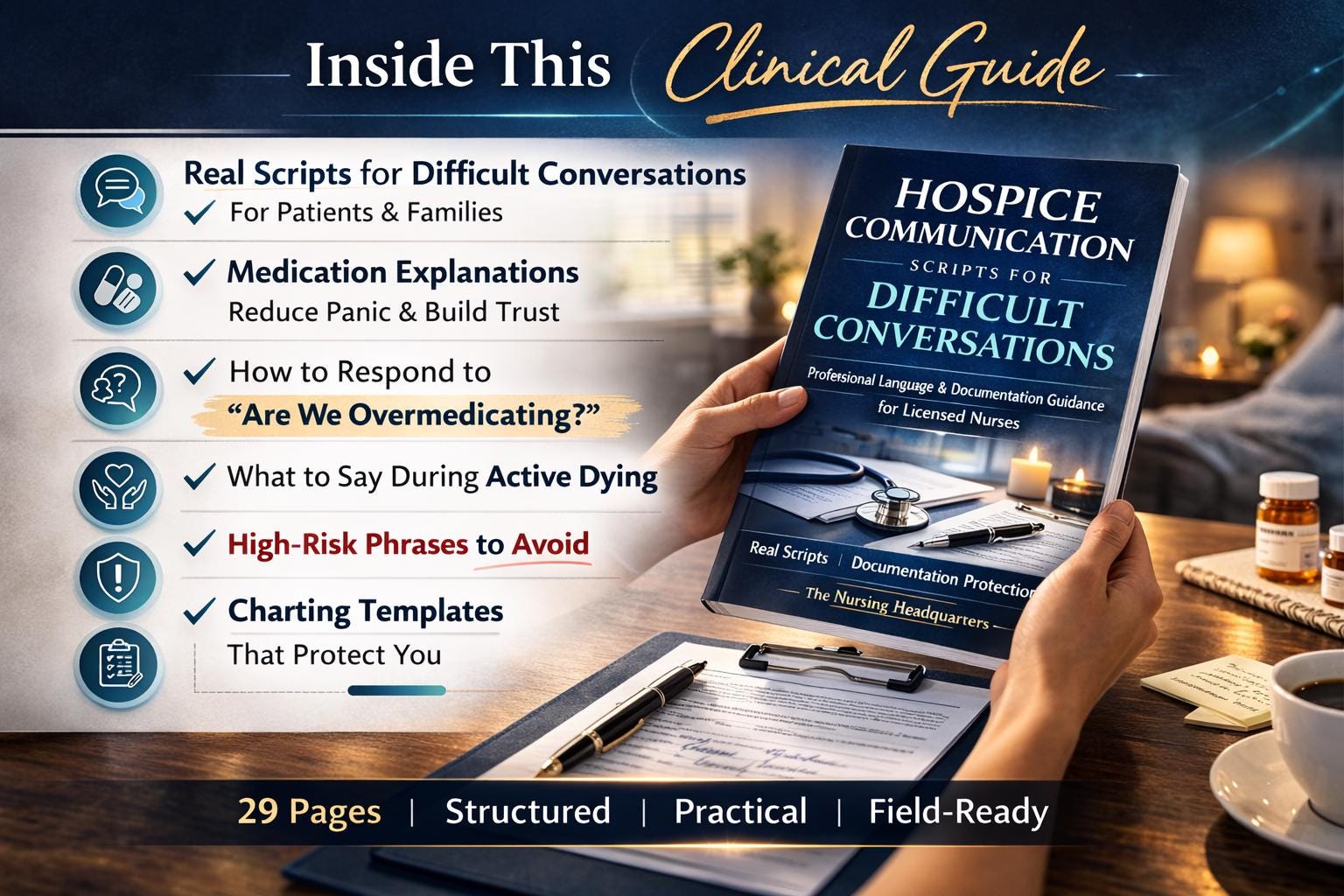 This comprehensive guide was created for licensed hospice and palliative care nurses who want structured, defensible, and professionally aligned language for the most emotionally charged conversations at the bedside.