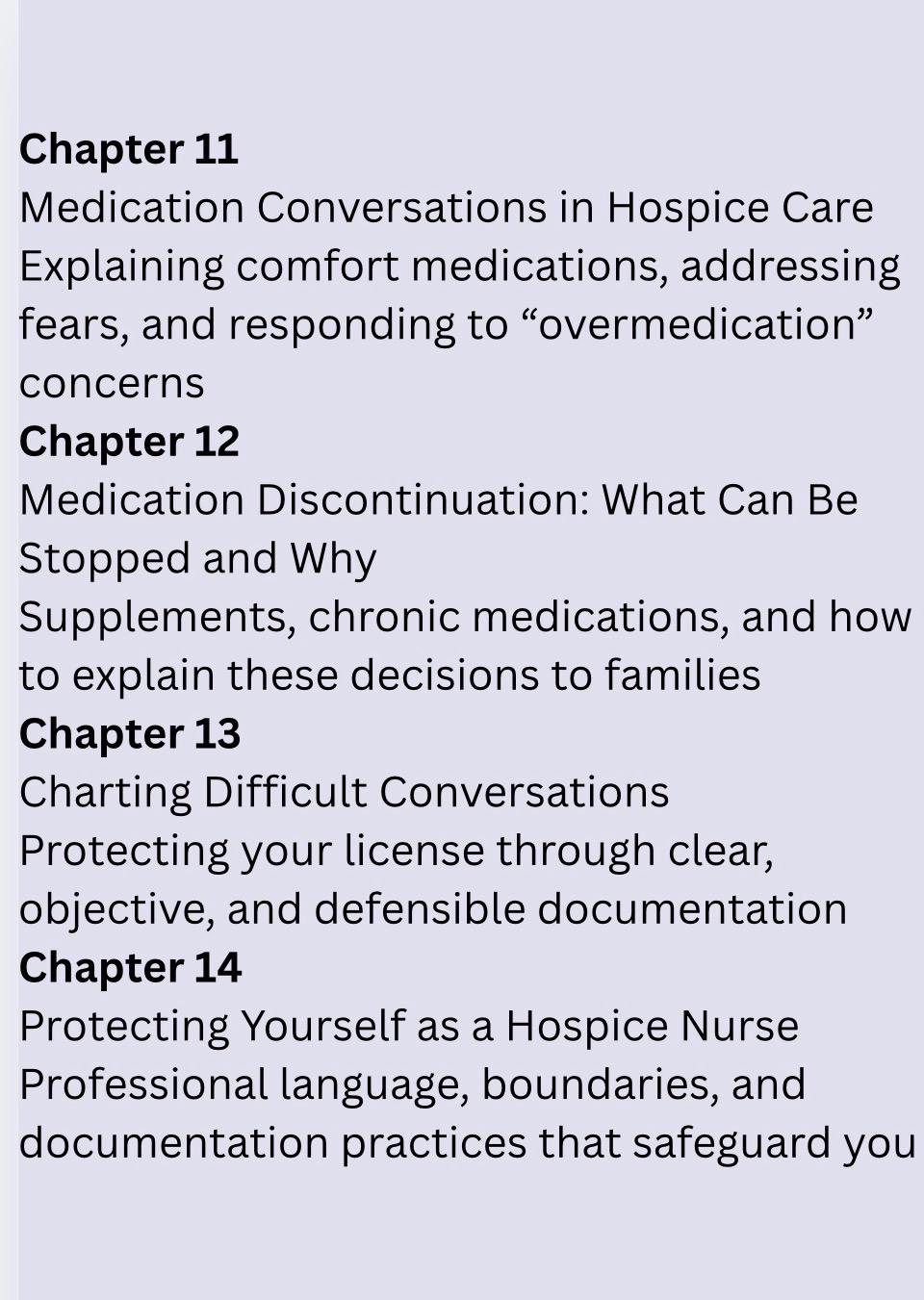 Hospice nursing is about more than clinical skill — it’s about knowing what to say in the hardest moments. This guide is written by a hospice nurse, for hospice nurses, to help you confidently navigate emotionally charged conversations with patients and families while protecting yourself professionally. Inside You’ll Learn How to: ✔ Answer “Are they dying?” honestly without destroying trust ✔ Navigate grief, hope, denial, anger, and fear ✔ Explain comfort medications without causing panic ✔ Respond to “Are we overmedicating?” ✔ Discuss medications that can be discontinued (supplements, statins, BP meds, diabetes meds, dementia meds) ✔ Support families during active dying and imminent death ✔ Know exactly what to say when death occurs ✔ Chart difficult conversations clearly and defensibly ✔ Use professional language that protects your license Why Nurses Choose This Guide ✔ Practical, script-based, real-world guidance ✔ Nurse-to-nurse language (not a textbook) ✔ Designed for quick reference in the field ✔ Valuable for new and experienced hospice nurses Format • Digital PDF download • Viewable on phone, tablet, or computer • No physical item will be shipped This is the guide hospice nurses wish they had before their first admission. 64 pages