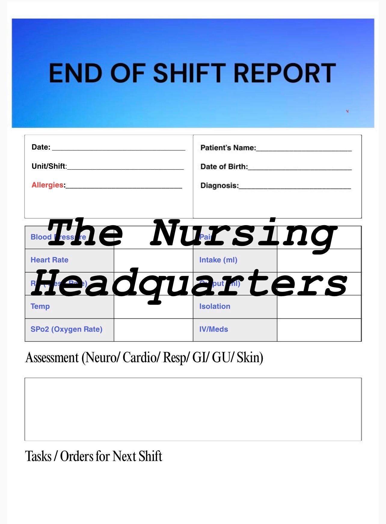 This End-of-Shift Report Sheet is the perfect tool for busy nurses who want to save time, stay organized, and provide safe, thorough care.