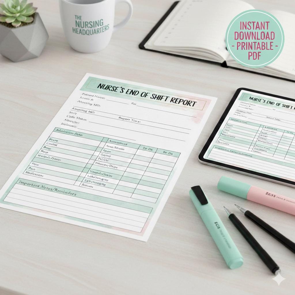 Make your nursing handoffs organized, efficient, and stress-free with this ready-to-use End-of-Shift Report Sheet. Designed for new nurses, students, and experienced nurses alike, this sheet helps you capture everything your next shift needs to know — without forgetting critical details.