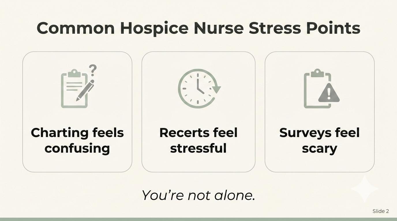 This Complete Series bundle was created for hospice nurses who want to document with confidence, support eligibility, and understand exactly how hospice charts are reviewed during surveys.
