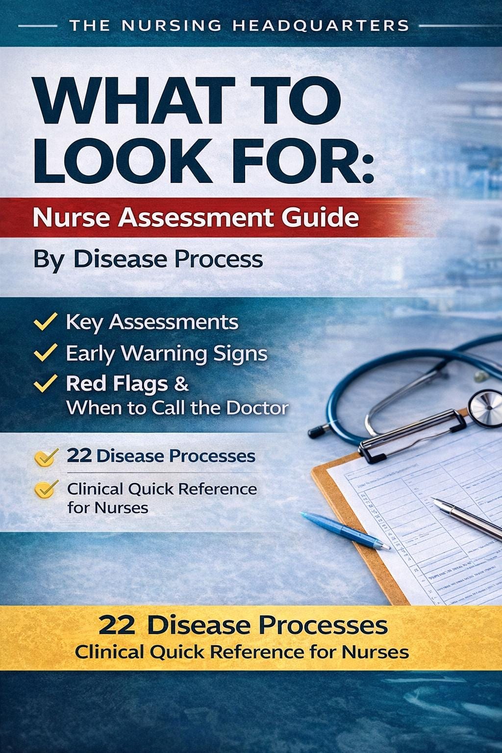 ✔ Key nursing assessments for 22 common disease processes